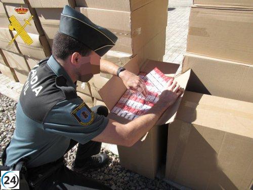 Mujer arrestada con 30,500 cajetillas de tabaco en Villafranca del Campo, Teruel.