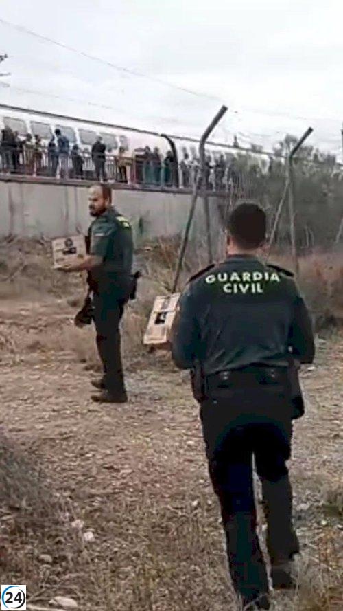 La Guardia Civil ayuda a cerca de mil pasajeros tras la falla de un AVE en Ballobar, Huesca.