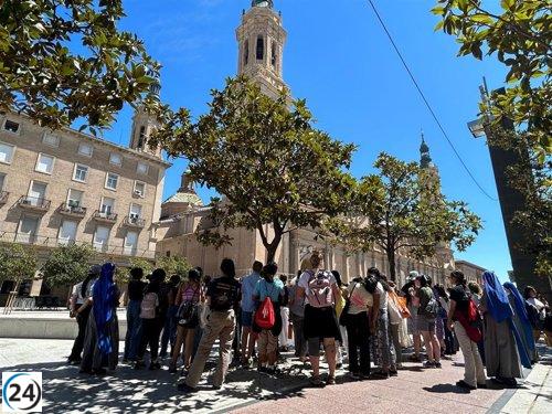 La Basílica del Pilar de Zaragoza acoge a miles de jóvenes de diferentes países en su ruta a la JMJ.